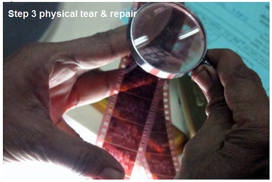 2 – Film tears & tape or splicing cement removed by PAINT.